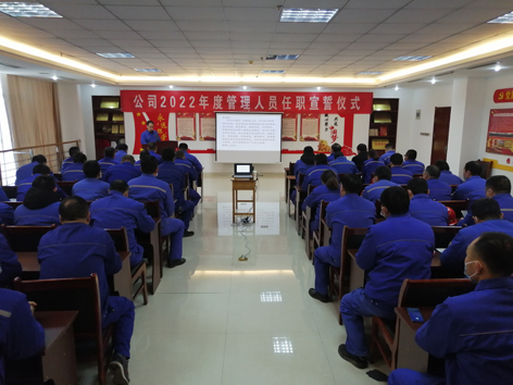 為進一步(bù)增強管理(lǐ)人(rén)員的(de)責任意識和奉(fèng)獻意識,更好地愛崗敬業、履職盡責,共同推動公司各項工作紮實高效開展,3月2日,公司在辦公樓六(liù)樓黨建活動中(zhōng)心舉行了2022年度管理人員任職宣(xuān)誓儀式,公司各單位2022年度受聘人員參加(jiā)了本次會議。