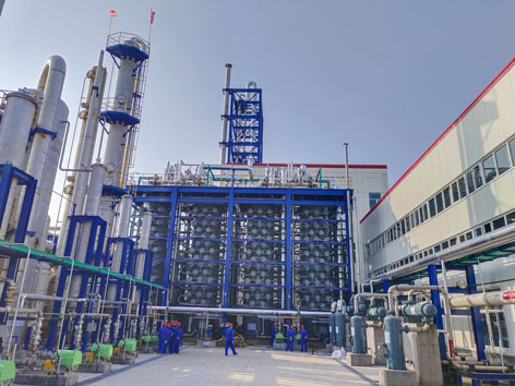 碳(tàn)酸氫銨項目位於廠區中部,總占地麵積約6800平方米(mǐ),裝置設計生(shēng)產能力(lì)為10萬噸/年碳酸氫銨。裝置采用先進的全過程循環吸收利用工藝(yì),可以(yǐ)實現尾氣達標排(pái)放(fàng),解決了碳(tàn)酸氫銨生產中環保異味的難題。裝置設置有較(jiào)完善的檢測、自動控製係統及必要的信(xìn)號(hào)聯鎖保(bǎo)護(hù)係統,自動包裝及碼(mǎ)垛(duǒ)係統,自動化水平達(dá)到國內(nèi)同類型裝置中較(jiào)先進水平。