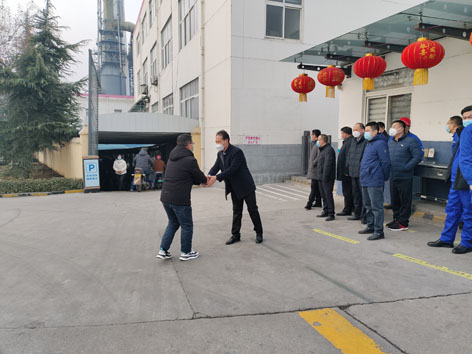 1月22日(農曆正月初一(yī))早上,公司領導李德軍、李(lǐ)峰、齊俊祥、呂懷磊(lěi)、許立剛、尹連偉、白如彬早早地(dì)在公司(sī)生產廠區大門口等候前來上班的員工,向年初一堅守崗位、敬業奉獻的公司員工送(sòng)去了節日(rì)的問候和新(xīn)年的祝福,對他們的辛勤(qín)工作表示了感謝。