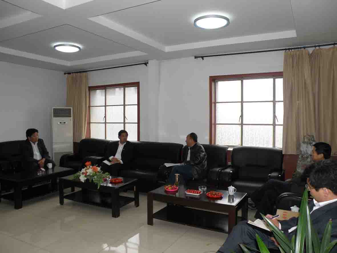 下圖為縣政協(xié)主席趙希忠、縣經(jīng)濟開發區(qū)黨委書記左效凱與公司董事長王宜明在公司接待室座談