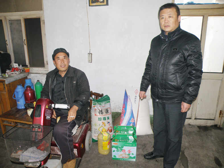 2013122下午(wǔ),公司工會副主席王曙光到悅莊鎮南學莊村看望慰問困難職工,並(bìng)送去了(le)大米、花(huā)生油、帶魚、雞蛋等(děng)過年物資,春節前夕,公(gōng)司共走訪15戶困難職工,將公司的溫暖和祝福送到他們心坎上。