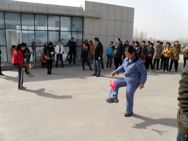 3月8日(rì)上午,在“三·八”國際婦女節到來之際,為豐富節日期間廣大女職(zhí)工的業餘文化生活,活躍節日氣氛,展現女(nǚ)職(zhí)工心係企業、愛崗敬業(yè)、健康向(xiàng)上、奮發有為的精神風貌(mào),公司在辦(bàn)公樓前舉辦健身娛樂活動。 本次活動分為趣味保齡球、定點(diǎn)投(tóu)乒乓球、跳繩、踢毽子等4個比賽項目,經過參賽(sài)選(xuǎn)手激烈角逐,沈芳等4人分別獲得趣味保齡球等4個項目(mù)的一(yī)等獎,吳(wú)全紅等8人獲(huò)得二等獎,王芳(fāng)等24人獲得三等獎。 下圖為比賽現場