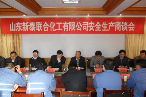 2013年4月6日,新泰市常務副市長劉(liú)玉、新泰市安監局局長李光榮(róng)一行到新(xīn)泰聯合化工進行調研(yán),並組織(zhī)召開了安全生產商談會。樓德鎮鎮長李興勝、公司董事長王宜明、總經理(lǐ)龐世森、新泰聯(lián)合化工高層管理人員及車間、安全、技術等部門主要(yào)負(fù)責人參加了會議。 劉市長在聽取(qǔ)了公司各部門安全(quán)生產(chǎn)工作匯報後,對近期新泰聯合化工安全(quán)生產工作給予了充分(fèn)肯定,同時指出工作中存在的不足,鼓勵大(dà)家再接再厲,紮實工作,攻堅克難,推動新泰(tài)聯合化工安全生產工作再上一個新台階。 圖為新泰聯(lián)合化工安全生產商談會現場