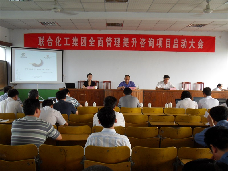 本報訊 2011年7月11日上午(wǔ),公司在西廠區二樓(lóu)會議室召開了全麵(miàn)管理提升谘詢(xún)項(xiàng)目啟動大會。會議由公司黨委委員、工會主席(xí)李(lǐ)紹勝主持。公(gōng)司領導、各處室、車間、部門主要(yào)負責人及聯(lián)豐公(gōng)司、新泰(tài)聯合化工公司總經理出席了會議。